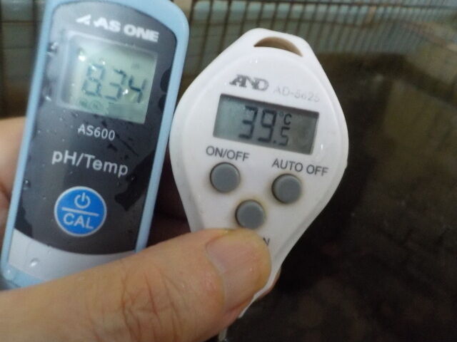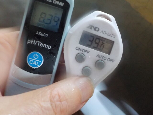浴槽:温度39.0℃,pH8.39、ORP値は-202mvに収束した。