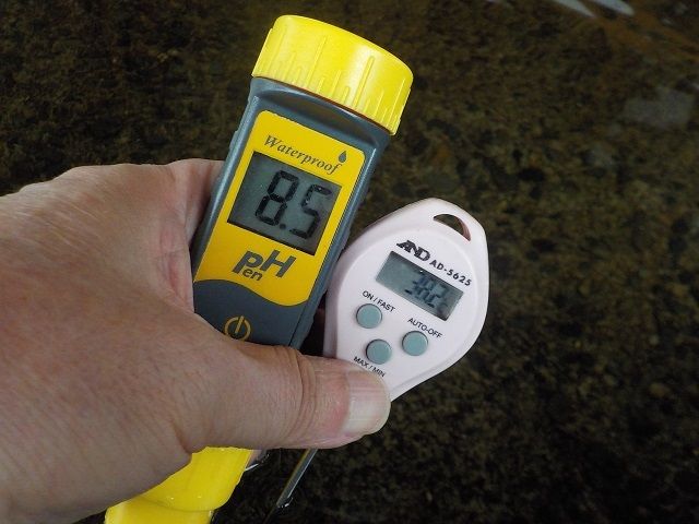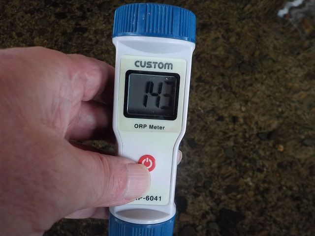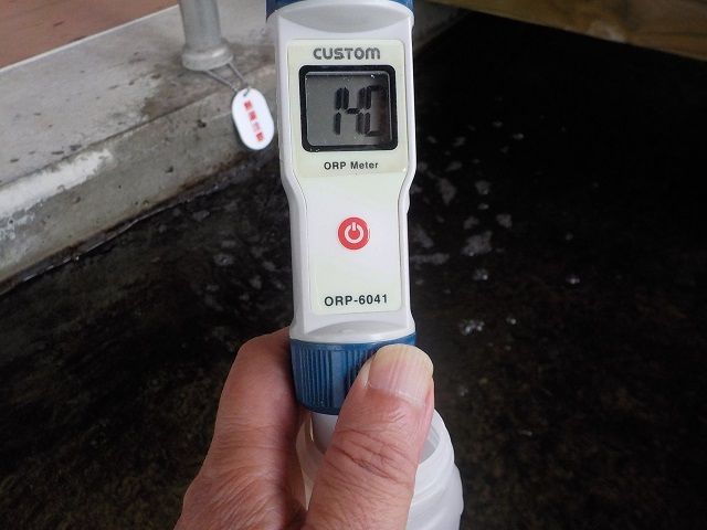 浴槽:温度38.2℃、pH8.5、ORP値は143mvに収束した。