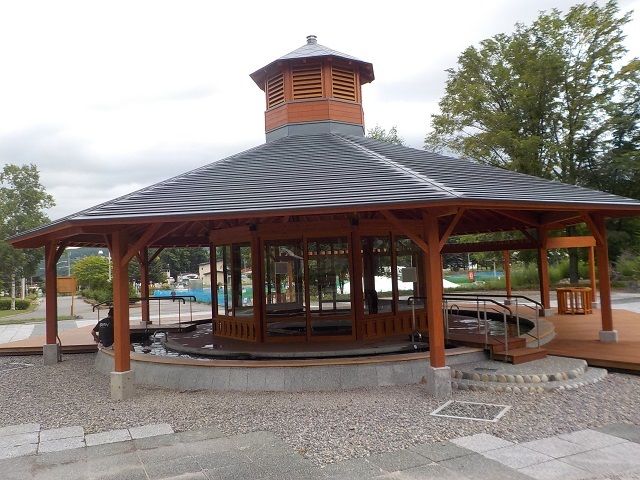 平成26年10月、老朽化で閉鎖していた噴水施設を整備して温泉水を利用した足湯が試験オープンし、翌年から4月下旬~10月末までの期間無料で利用された。平成28年度の里見が丘公園整備工事で屋根を設置して中央にも仕切り付きの足湯が完成。平成29年4月27日にリニューアルオープンして通年利用可能となった。温泉は昭和63年に掘削した足寄町泉源(公共用施設泉源)を使用し、温泉プール(平成6年5月完成)、足寄町総合体育館の暖房にも利用されている。