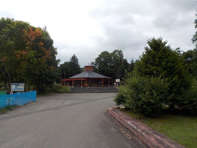 足寄神社前の坂道を上がっていくと、総合体育館、陸上競技場、野球場などの施設がある。駐車場に車を止めて足湯に向かう。左手に今年7月にオープンしたふあふあドームで子供らが遊んでいた。