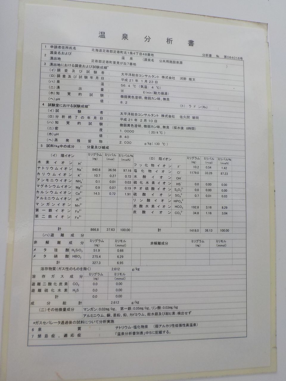 ◇温泉分析書