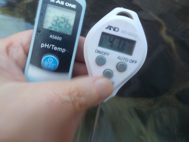 浴槽:温度41.6℃、pH8.26、ORP値は234mvに収束した。