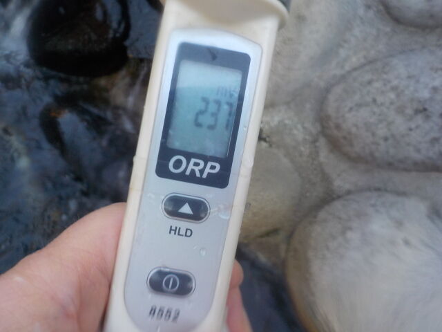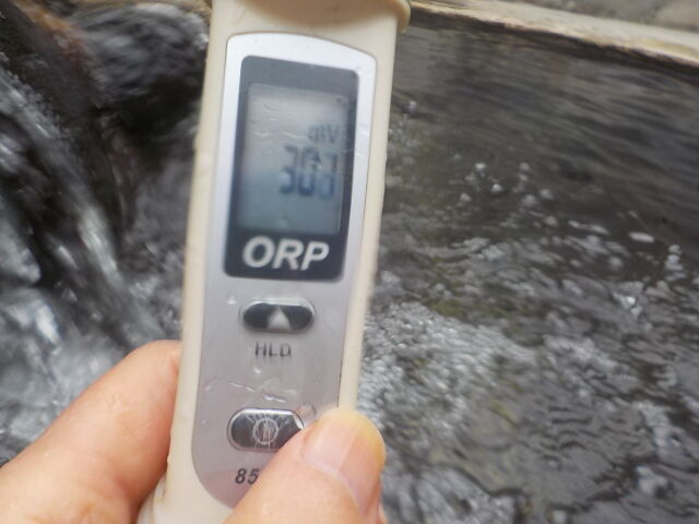 打たせ湯:温度23.8℃、pH7.70、ORP値は13mvに収束した。
