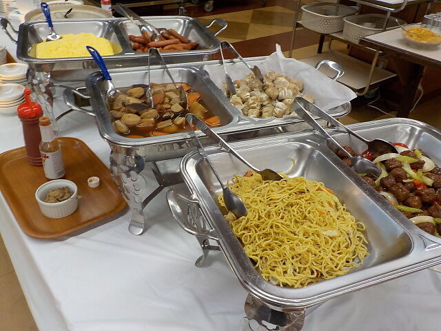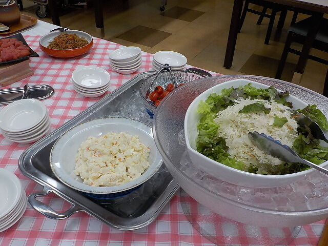 使い捨て手袋着用。ビュッフェ形式で席は自由