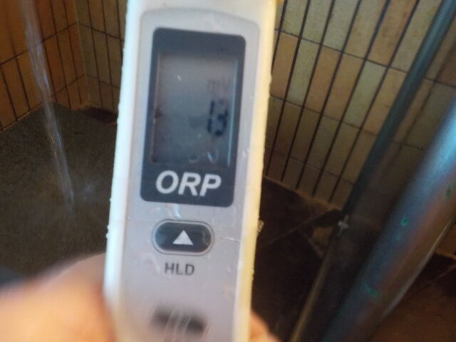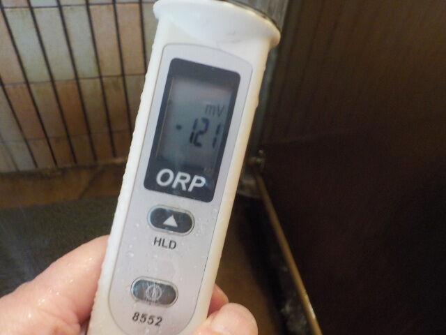 浴槽:温度41.6℃、pH8.30、ORP値は208mvに収束した。