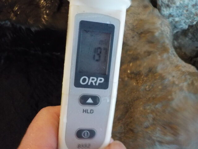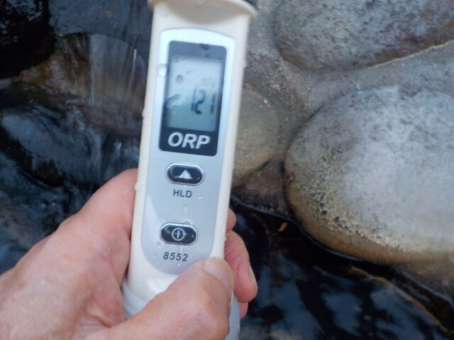 打たせ湯:温度23.6℃、pH7.72、ORP値は-121mvに収束した。