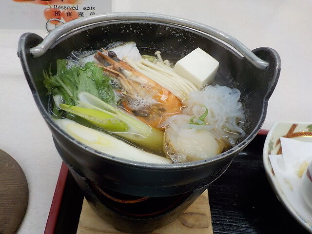 夕食は日替わり定食。低価格プランなので品数は少ない。寄せ鍋は煮えるまで時間がかかって手持ち無沙汰になる。