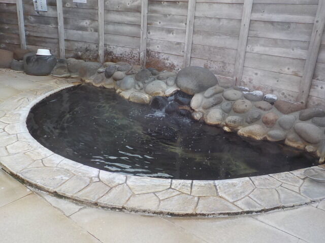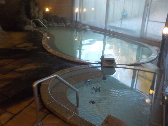 無色透明の湯。湯口から加温循環湯が注いでいる。知覚的には、微弱カルキ臭・無味。湯底の吸込み口2箇所から湯が吸い込まれている。夜間はカルキ臭が強めになる。