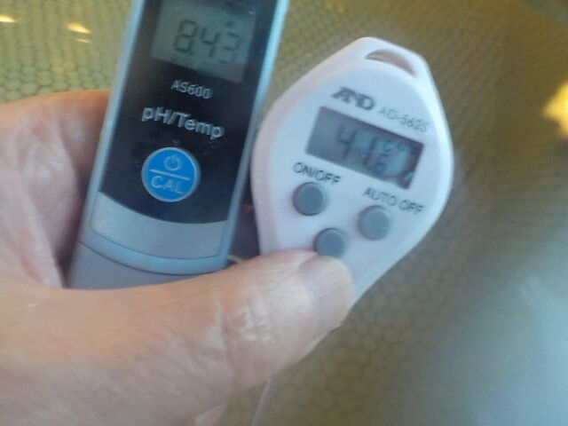 浴槽:温度41.6℃、pH8.43、ORP値は83mvに収束した。