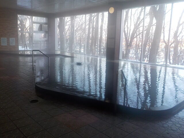 大浴場には、大浴槽(バイブラ付き)、小浴槽、トロンサウナ(マットが必要)を配している。シャワー付きカラン15台(カランにも源泉使用)。シャンプー類は置いていない。コロナ対策でトロンサウナはしばらく休止。
