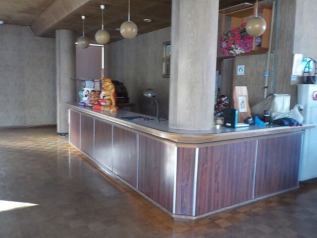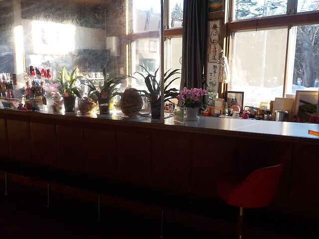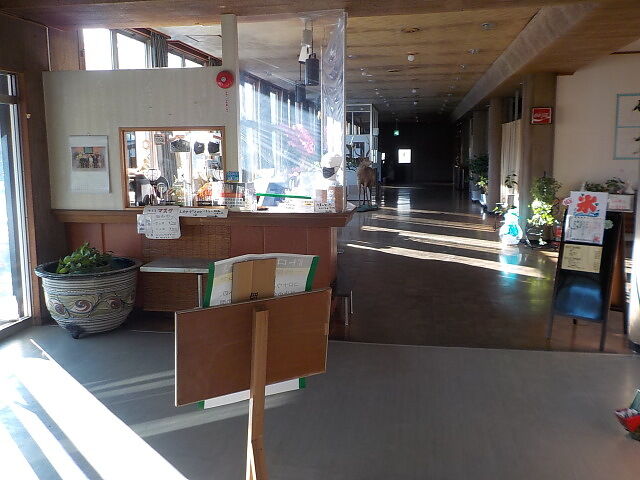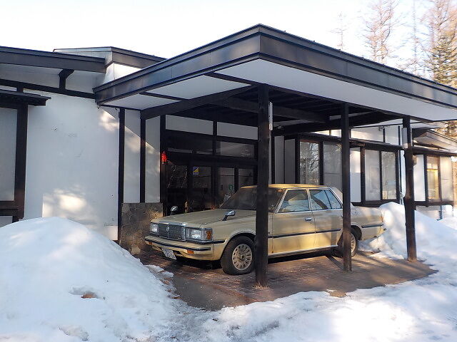 レトロな車寄せがある左手の玄関は宿泊者用だが、今は喫茶カウンターで受け付けているので日帰り玄関の方が近い。平成16(2004)年頃まで1階にレストランがあり宿泊者も食事が出来たが、現在は素泊まり専用で客室を3室に減らしている。2階は宴会場だが長いあいだ使われていないようだ。