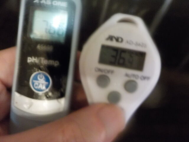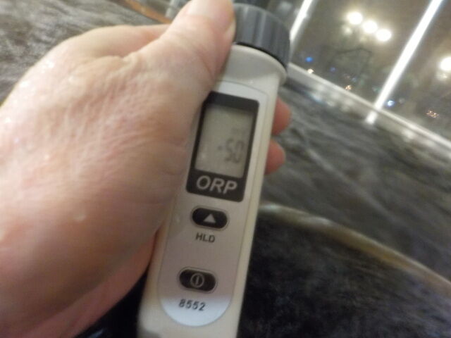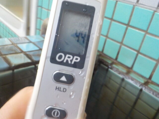 浴槽:温度36.4℃、pH7.66、ORP値は47mvに収束した。