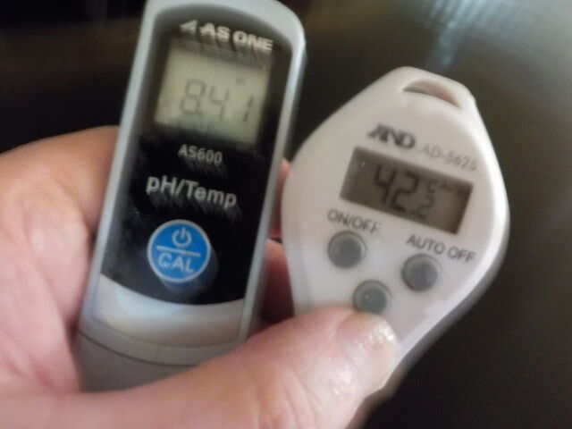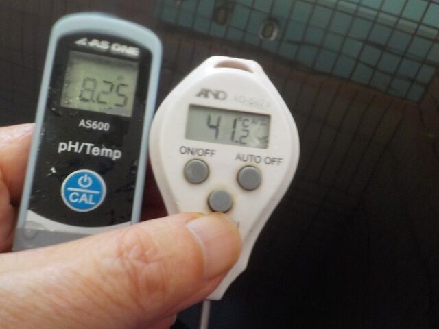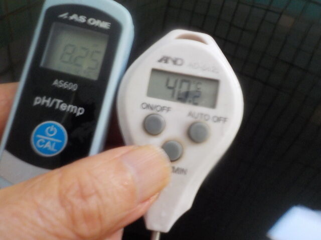 浴槽:温度42.2℃、pH8.41、ORP値は-24mvに収束した。