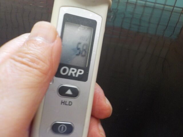 浴槽:40.2℃、pH8.25、ORP値は56mvに収束した。