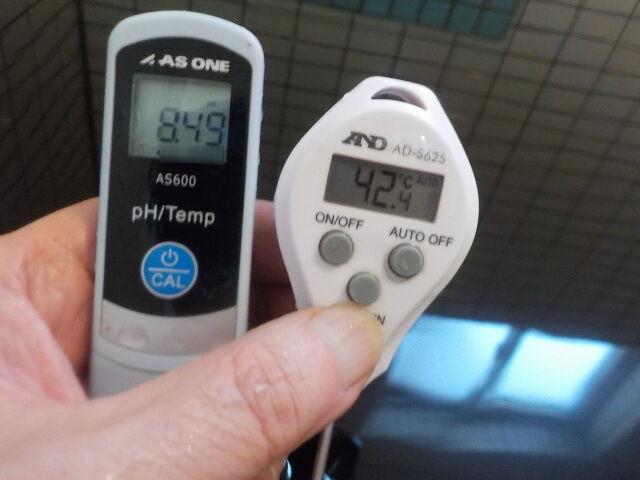 浴槽:42.4℃、pH8.49、ORP値は-53mvに収束した。