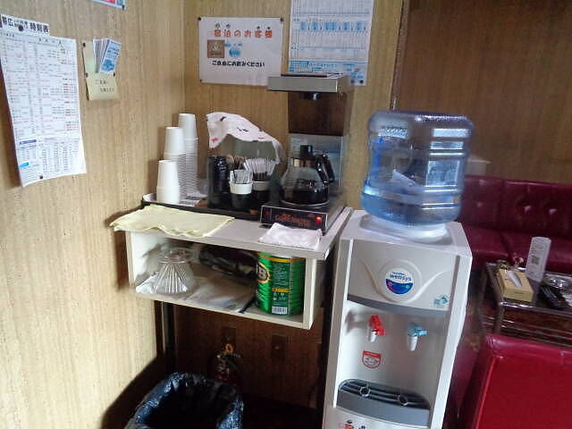 宿泊者はコーヒー、ウェルネス水が無料で飲める。