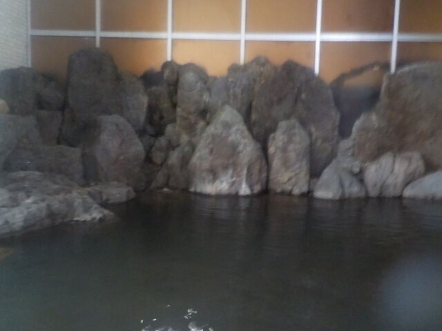 溢れた湯で床タイルが滑りやすく危険なので滑り止めマットが敷かれるようになった。男女仕切りに巨岩を積んでいる。シャワー付きカラン10台。シャンプー類は持参のこと。