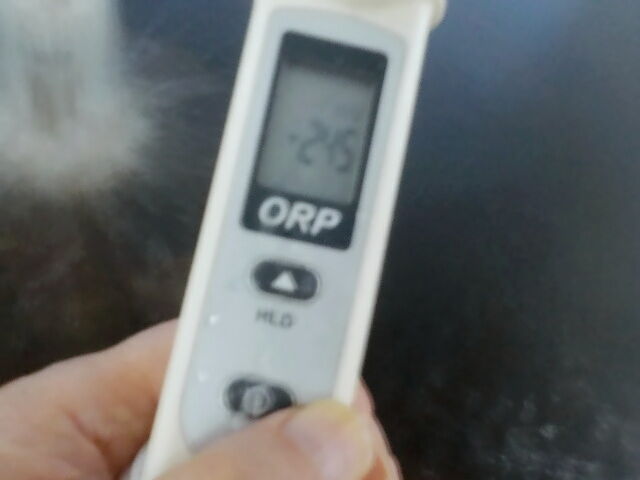 浴槽:33.6℃、pH8.50、ORP値は―27mvに収束した。