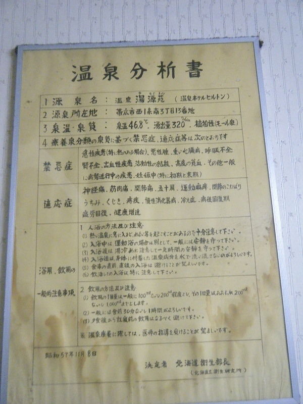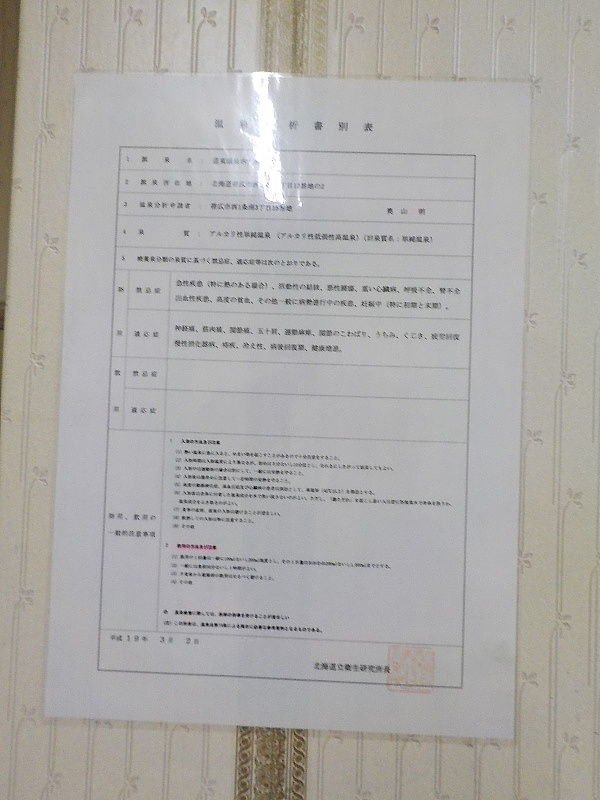 2016年2月現在、撤去している。 温泉分析書となっているが温泉分析書別表のようなもの。