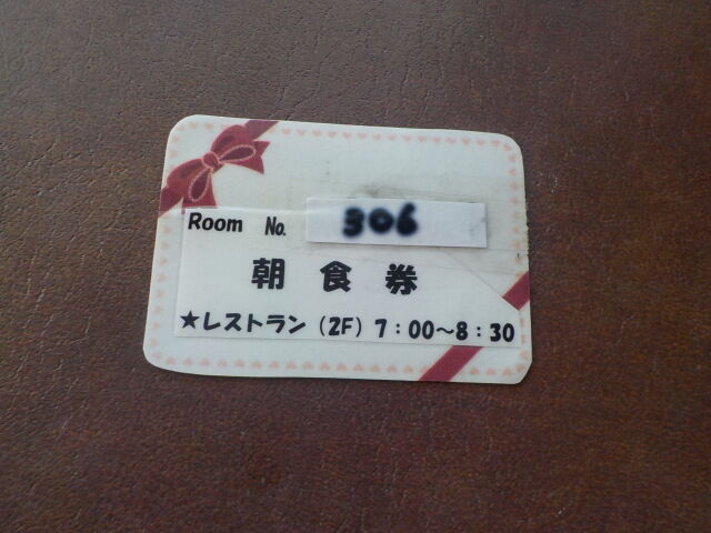チェックイン時に貰った朝食券を渡す。