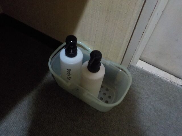 大浴場にシャンプー類を持っていく。大浴場の利用は15時~23時、5時~9時。