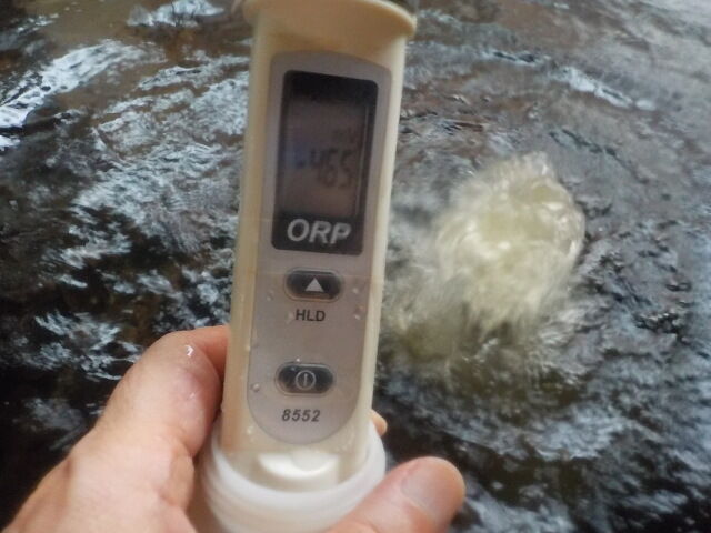 湯口:30℃~38℃、pH8.52、ORP値は-53mvに収束した。