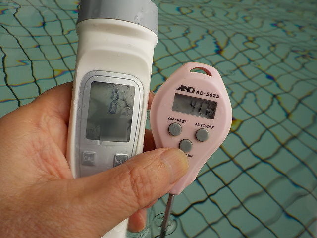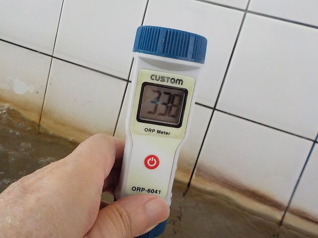 浴槽:温度39.4℃、pH8.8、ORP値は405mvに収束した。