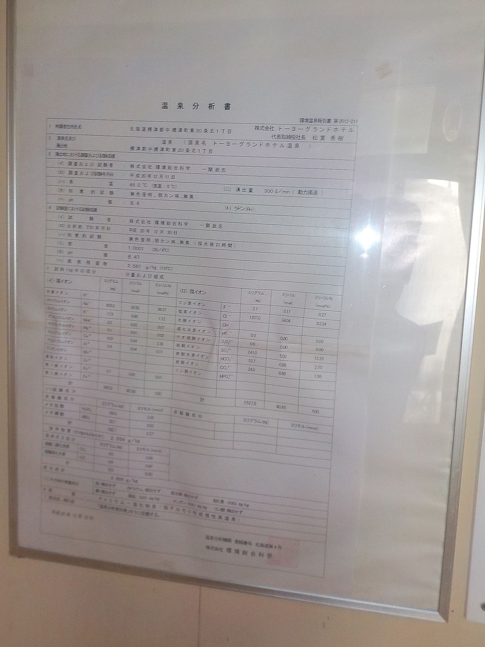 ◇温泉分析書(脱衣所掲示)