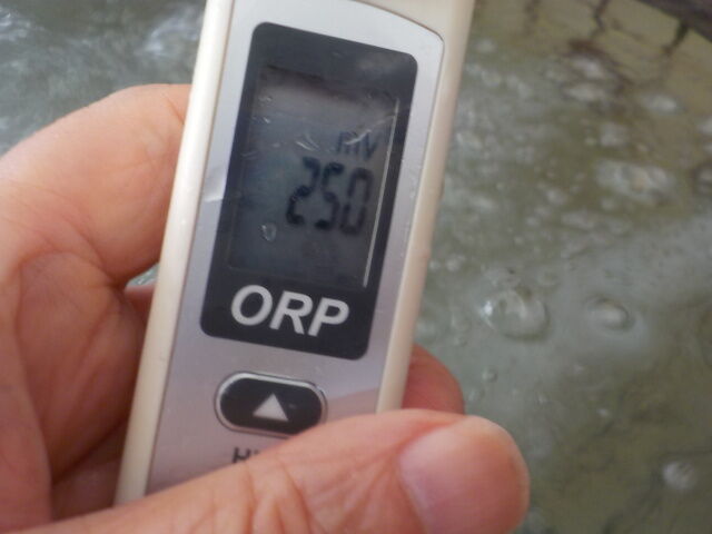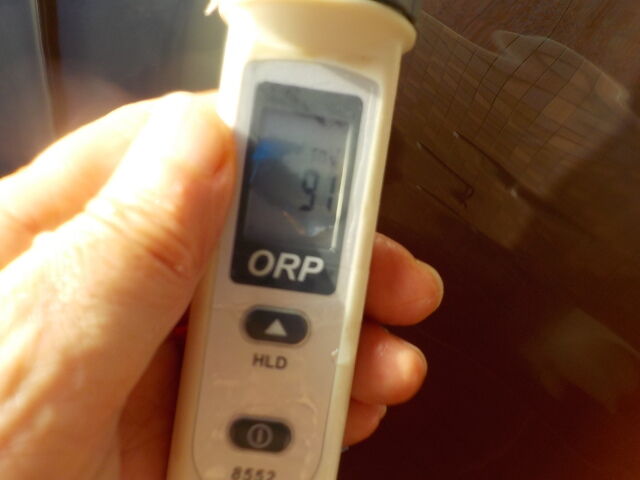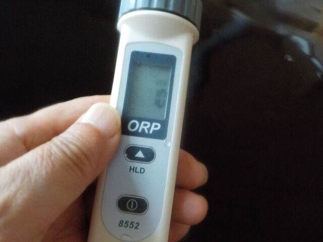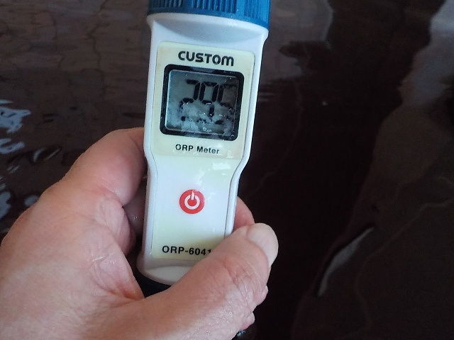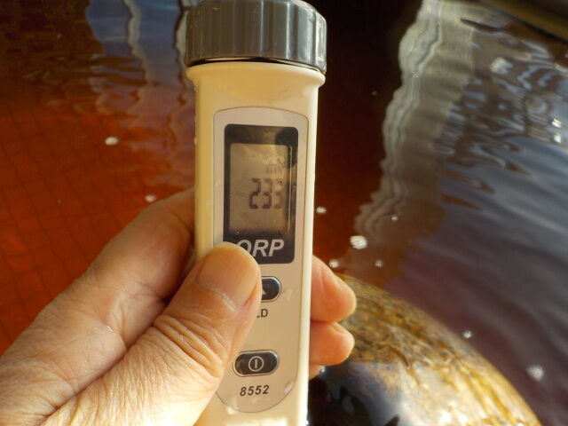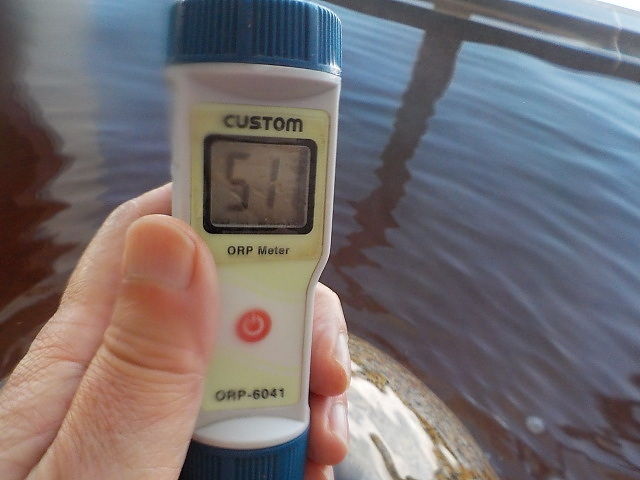 浴槽:温度44.2℃、pH7.7、ORP値は295mvに収束した。