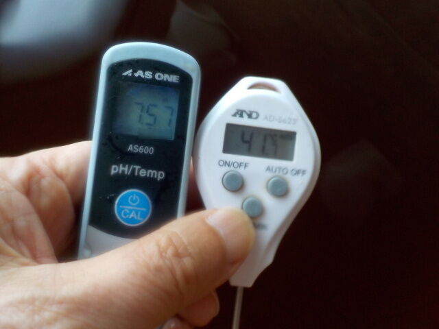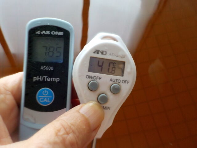 浴槽:温度41.7℃、pH7.57、ORP値は41mvに収束した。