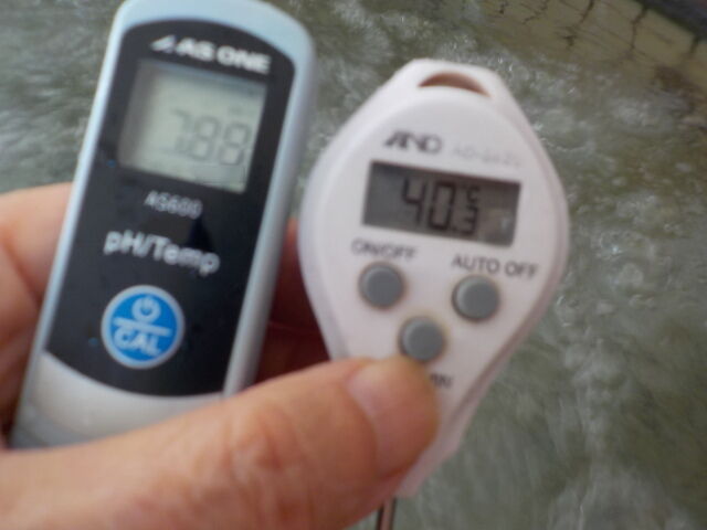 浴槽:温度40.3℃、pH7.88、ORP値は250mvに収束した。