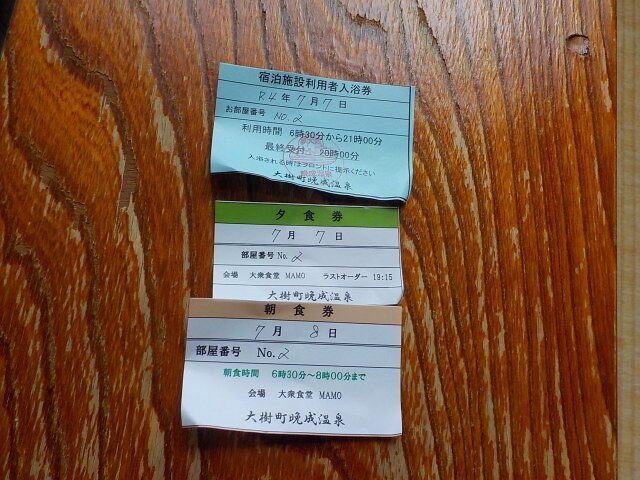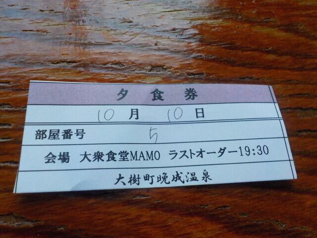 夕食券をスタッフに提出。夕食は16時~20時、朝食(無料)は7時~8時。