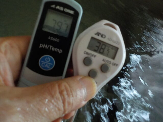 浴槽温度:38.7℃、pH7.97、ORP値は42mvに収束した。