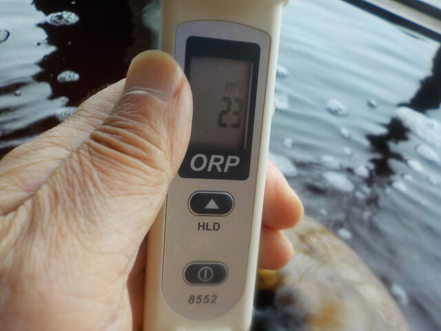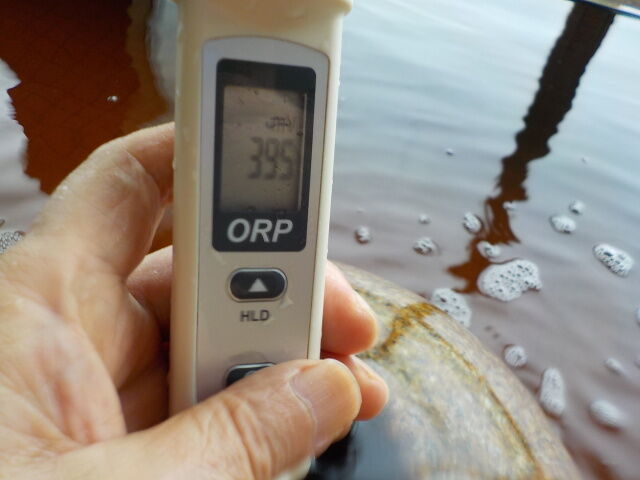 浴槽:温度44.8℃、pH7.81、ORP値は10mvに収束した。