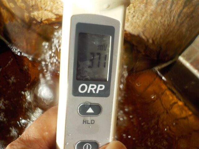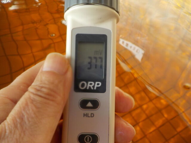 浴槽:温度44.6℃、pH8.41、ORP値は377mvに収束した。