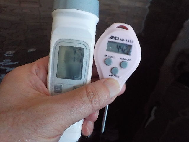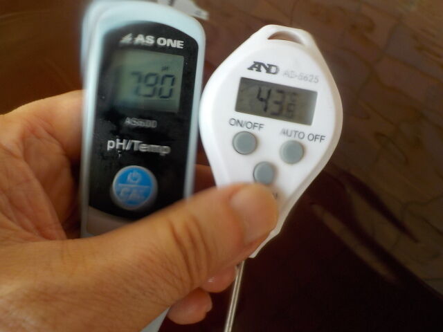 浴槽:温度43.8℃、pH7.90、ORP値は61mvに収束した。