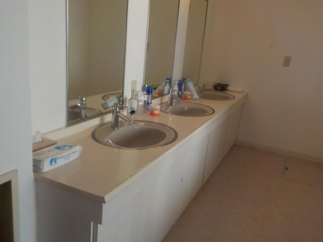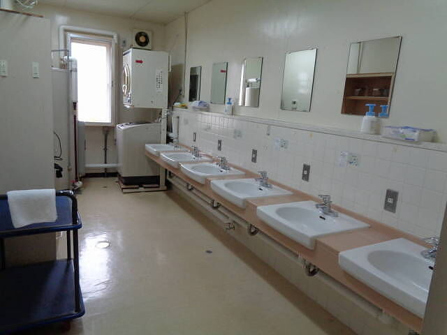洗面所(電子レンジあり)と男女別トイレ(洋式トイレウォシュレット)。