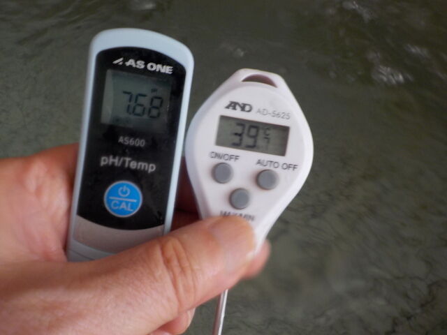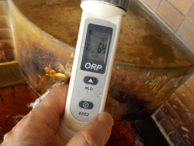 湯口:温度40℃~45℃、pH8.13、ORP値は371mvに収束した。