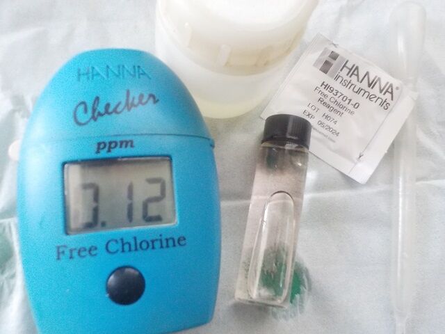 測定値は0.12ppmとなり、遊離残留塩素の検出を確認した。