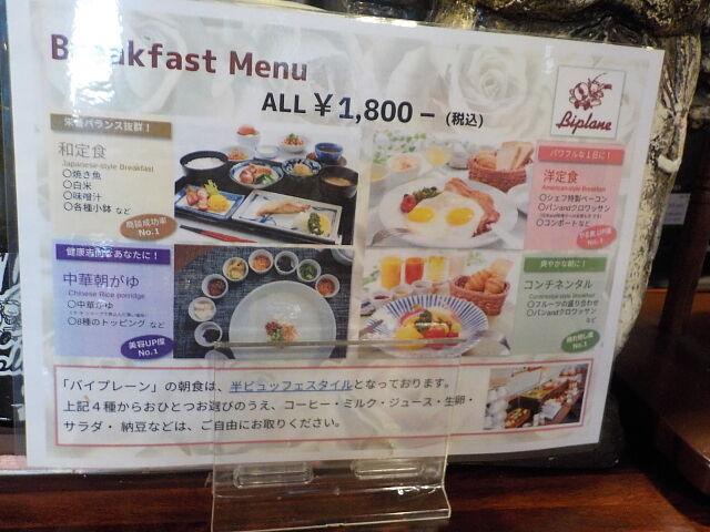 食事は2階のレストラン「バイプレーン」でとる。夕食は17時~21時、朝食は6時30分~10時。
