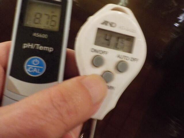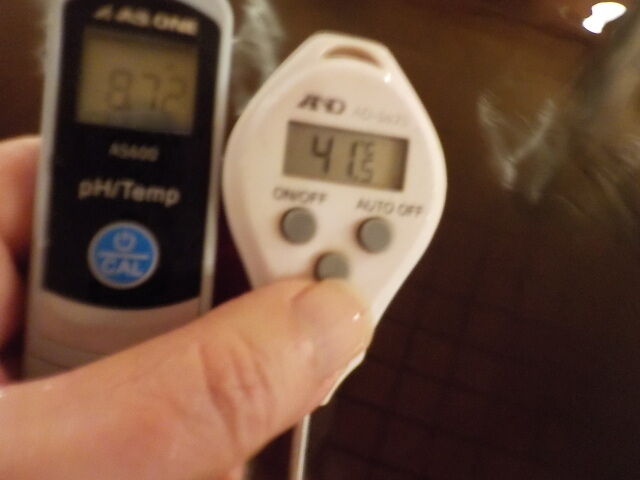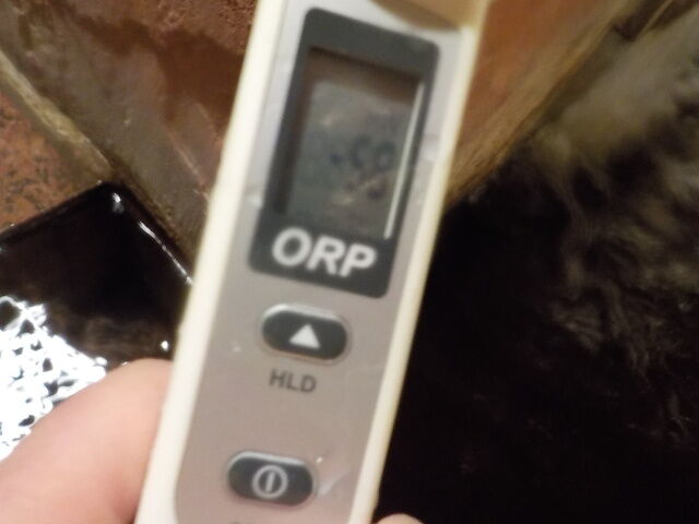 浴槽:温度41.5℃、pH8.72、ORP値は-20mvに収束した。