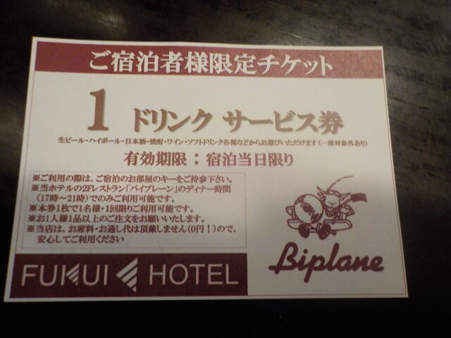 チェックイン時に貰った1ドリンクサービス券