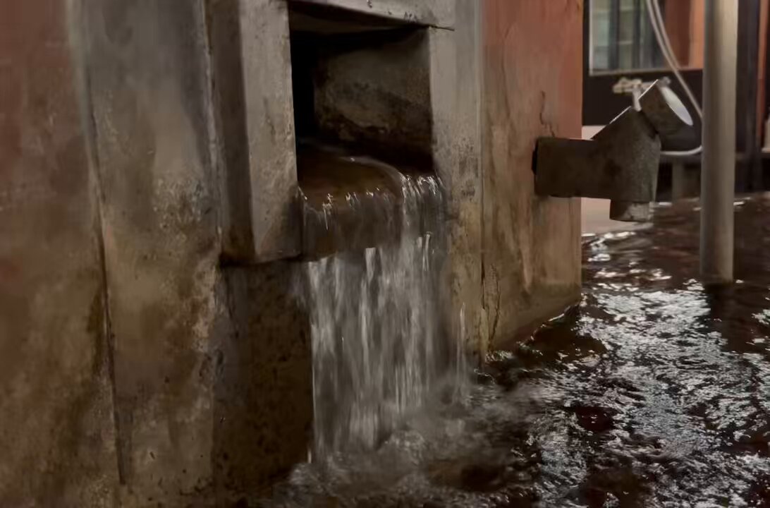 ウーロン茶色半透明の湯。湯口から約30ℓ/分注湯。知覚的には、微弱モール臭・微弱塩味。溢れた湯は湯縁からオーバーフローしている。ボタン式加水蛇口があるが使用することはないと思われる。