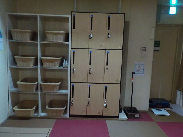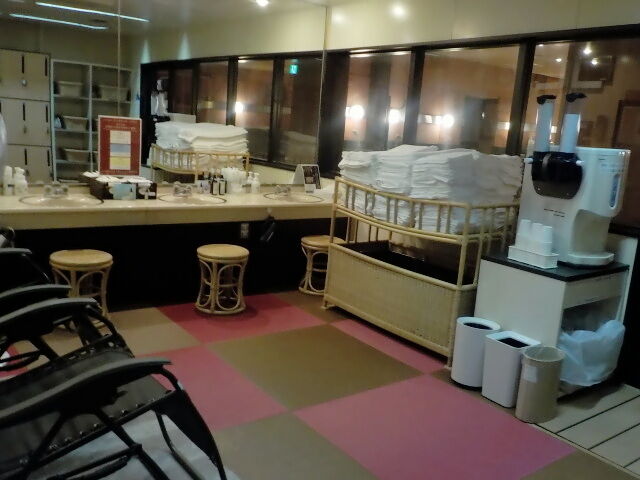 浴場はエレベータ―直結の地階1階にある。宿泊客は15時~翌朝10時まで利用可。脱衣所前に貴重品ロッカー(無料)あり。