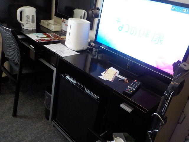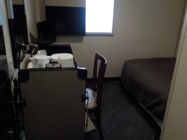 案内されたのは3階シングル禁煙室。無料Wi-Fi利用可。お茶パックはロビー前に置いている。