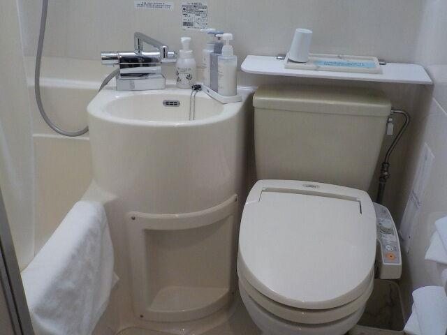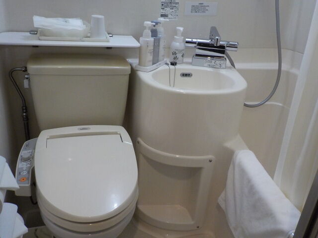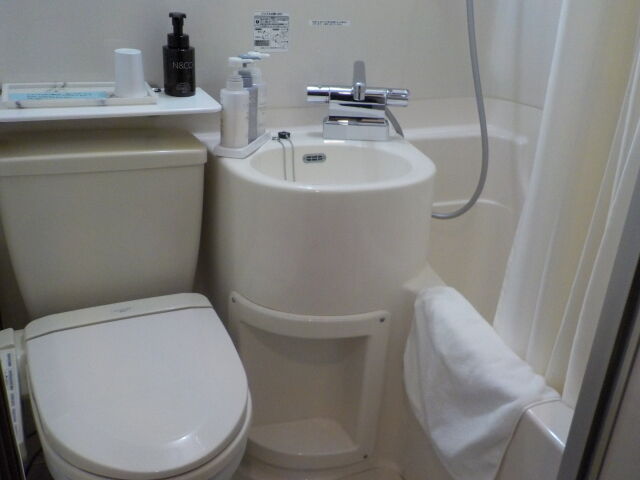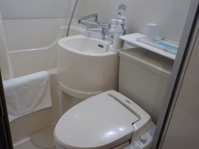ユニットバス。歯ブラシ、カミソリ、ブラシあり。