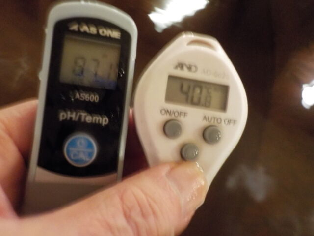 浴槽:温度41.2℃、pH8.77、ORP値は37mvに収束した。