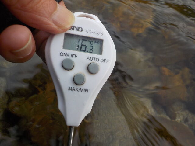 16時51分の計測で水温16.3℃。ヒットフライはエルクヘアカディス#12(TMC5212)。