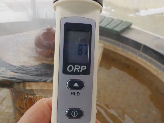 浴槽:温度43.2℃、pH7.29、ORP値は125mvに収束した。
