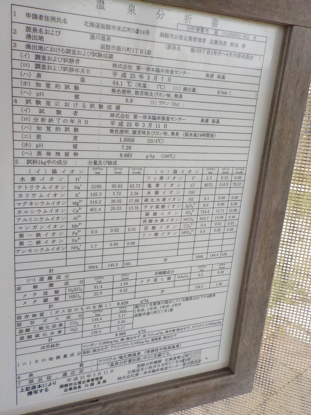 ◇温泉分析書